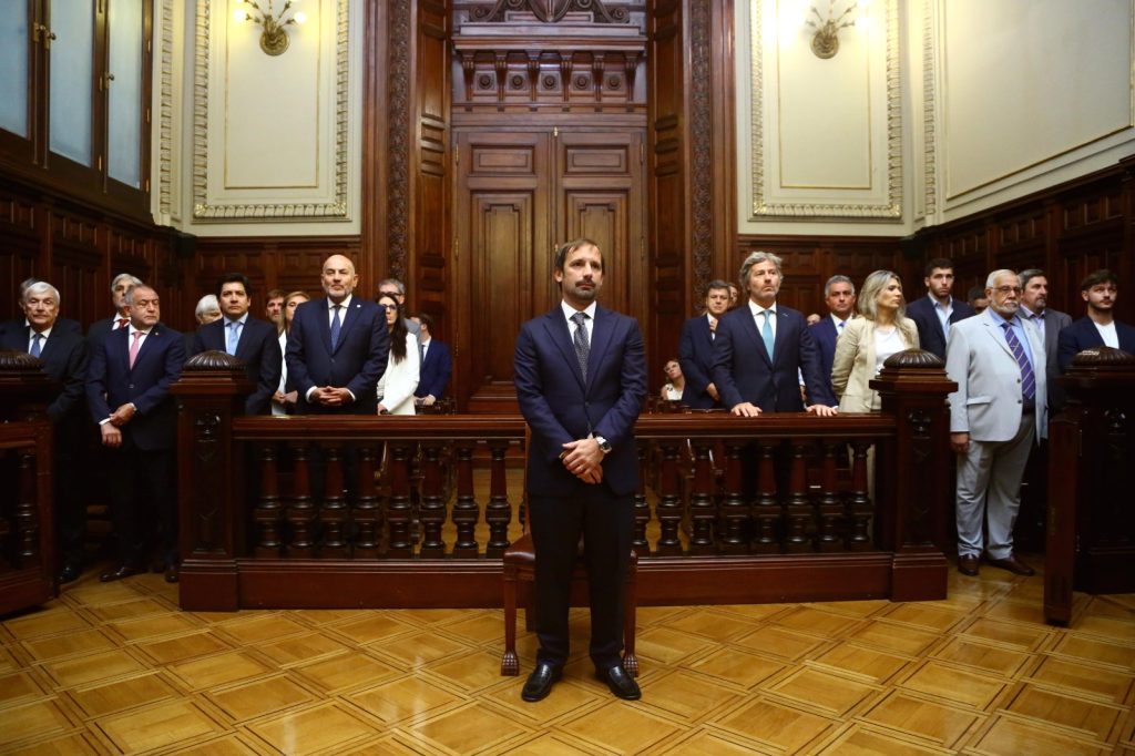 El presidente del Consejo de la Magistratura y de la Corte Suprema de Justicia de la Nación, Horacio Rosatti, junto al vicepresidente del Tribunal, Carlos Rosenkrantz, y el ministro Ricardo Lorenzetti, tomó juramento este martes, en los términos establecidos en la Acordada N° 3/2026, a Santiago Viola, nuevo integrante del Consejo de la Magistratura de la Nación.